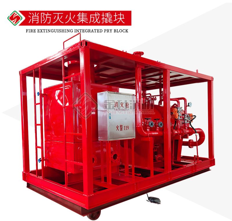 消防滅火集成撬塊主要有供水系統(tǒng)、比例混合系統(tǒng)、消防水箱、泡沫產(chǎn)生裝置、控制柜、閥門及管道組成。消防滅火集成撬運輸方便,可使用在鉆井裝置區(qū)、鉆井營房、海上鉆井平臺等。滅火撬可以按照用戶需求定制。
