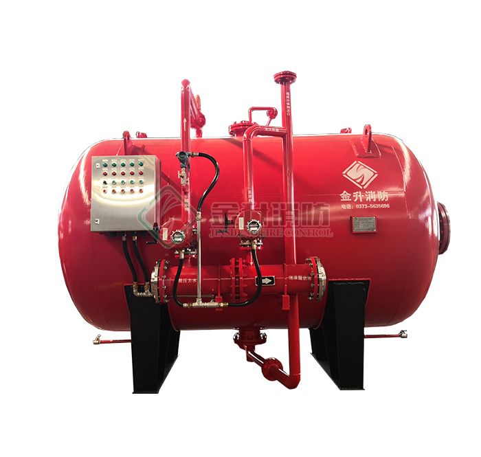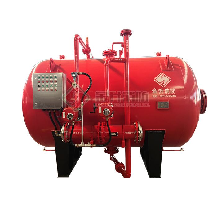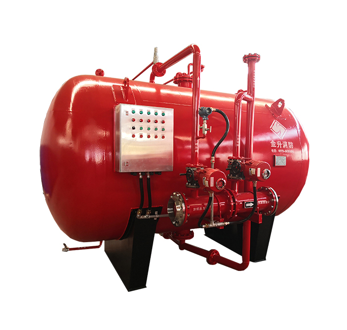 壓力式比例混合裝置是用來存儲(chǔ)泡沫滅火劑并通過壓力式泡沫比例混合器利用泵組的供水將泡沫滅火劑置換出來,并與供水按一定的比例混合形成泡沫混合液的裝置。
